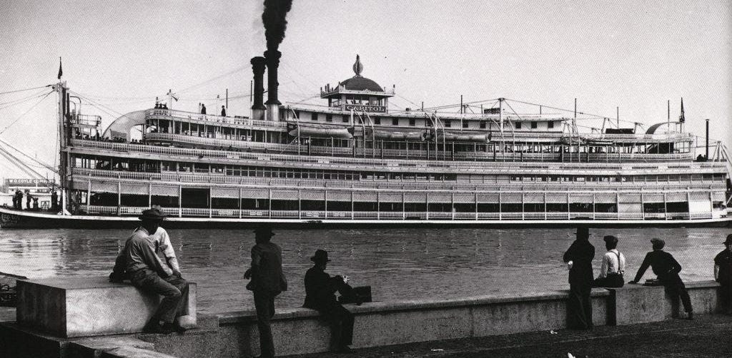 "Riverfront! Algiers ferry and riverboats ahead!" called the conductor, his uniform crisp despite the humid air.