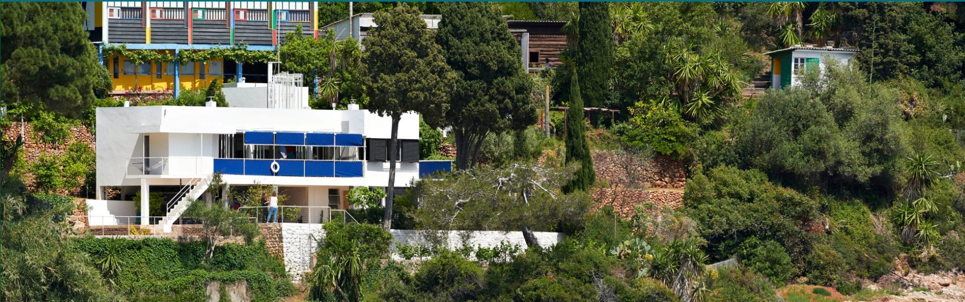 He spent August in this minimalist home here every year. The cabin did not have a kitchen but was attached to a fish restaurant owned by a good friend of Le Corbusier. He ate there every night. He worked in a small builder's cabin in front of the Cabanon. He swam every day in the sea in front of E.1027 and he observed its decline. On August 27, 1965, against his doctor's orders, he went swimming; that morning Le Corbusier's body washed up on the shores below.