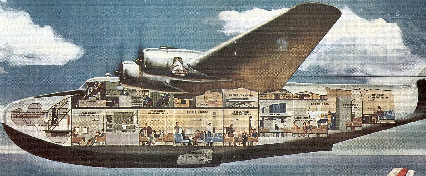 The pilot asks the crew to inform the passengers that they will be turning back. He banks and turns, bringing the elegant Boeing 314 Clipper back on a course for Foynes, Ireland which they had left 5 hours earlier.