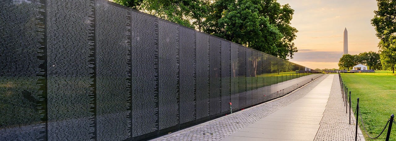 The Vietnam Veterans Memorial, designed by Maya Lin, an undergraduate student at Yale University at the time, is a powerful and sobering place full of symbolism, reflection and healing. The names of 58,000 American service members who lost their lives or went missing during the Vietnam War are etched into the highly polished surface.